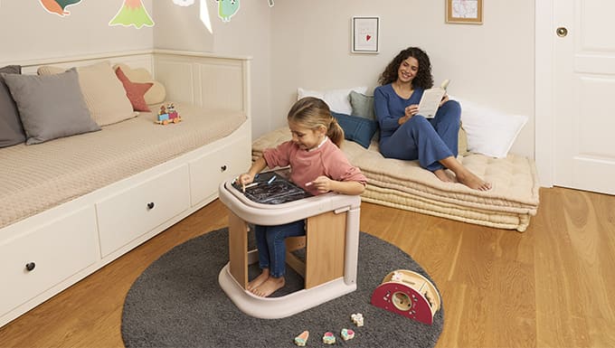 Pas seulement pour les promenades en extérieur : la nacelle Seety 2 peut être détachée du cadre de la poussette et utilisée à la maison pour permettre au bébé de continuer à se détendre et à se reposer. Le support pratique Chicco Lullaglide est l'accessoire idéal, également équipé d'une fonction d'inclinaison, pour utiliser la nacelle à la maison. (adaptateurs nécessaires)